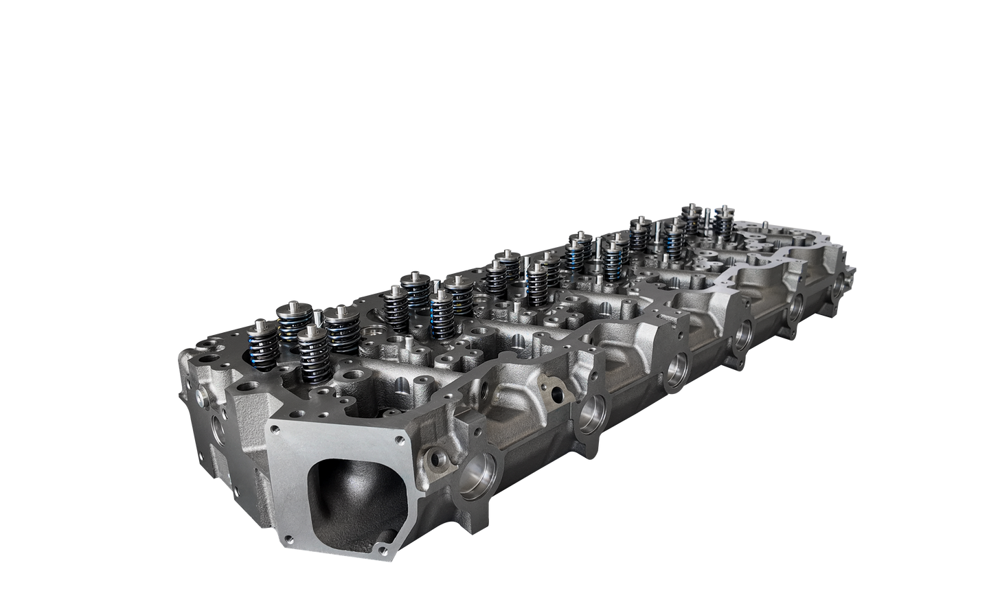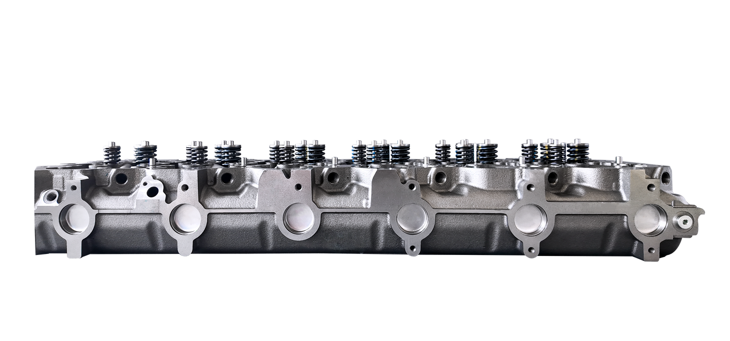 This cylinder head is equipped with Inconel intake and exhaust valves, a superalloy known for its exceptional strength at high temperatures. Inconel resists oxidation, corrosion, and thermal fatigue far better than conventional valve materials, making it ideal for high-performance diesel engines under constant heavy load. These valves maintain their integrity under extreme heat and pressure, ensuring consistent sealing and reduced wear over time.